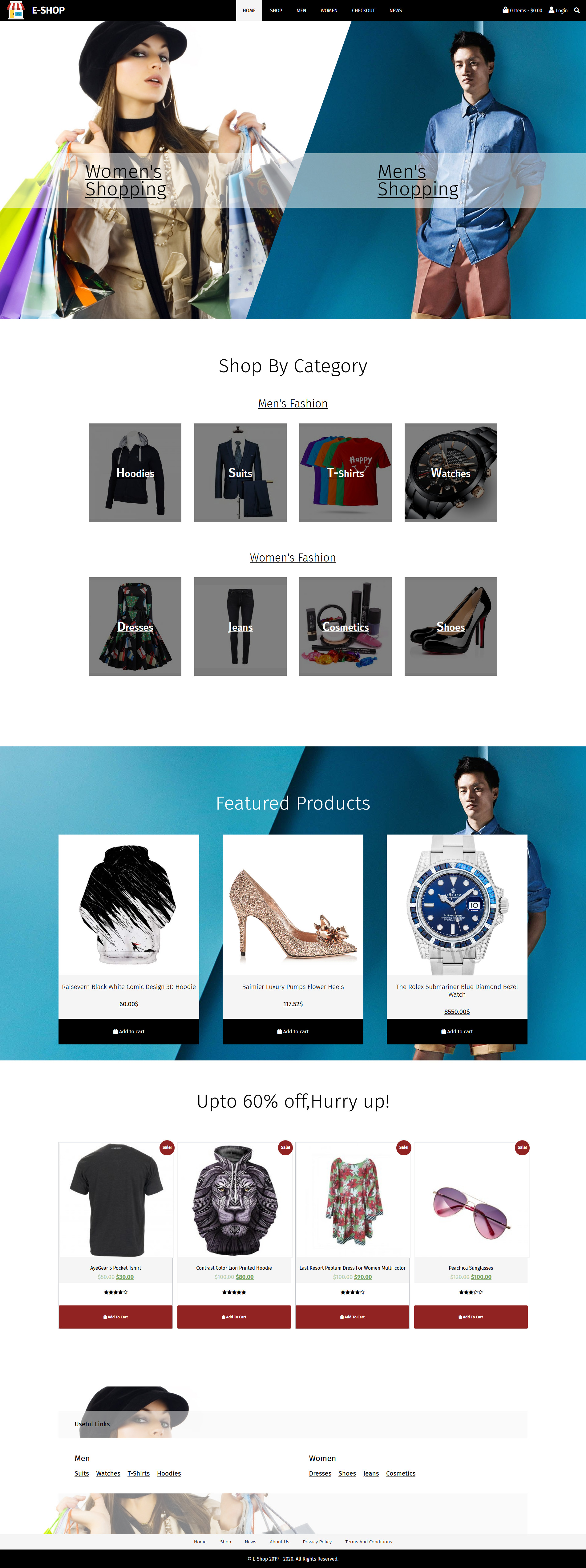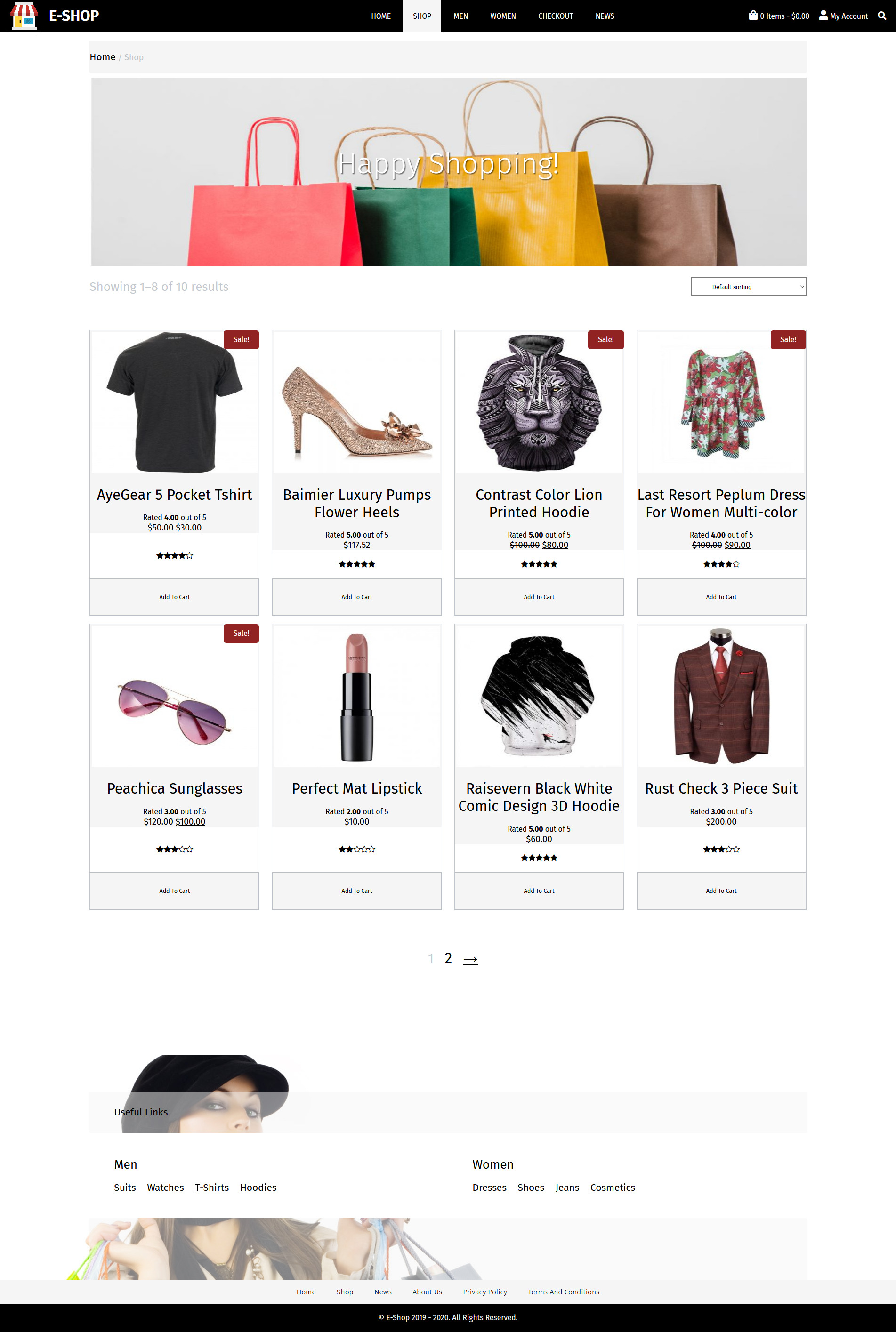 E-shop is a custom wordpress theme, built with beautiful and a very clean design and fully integrated with woocommerce to have all the features of an online ecommerce website.