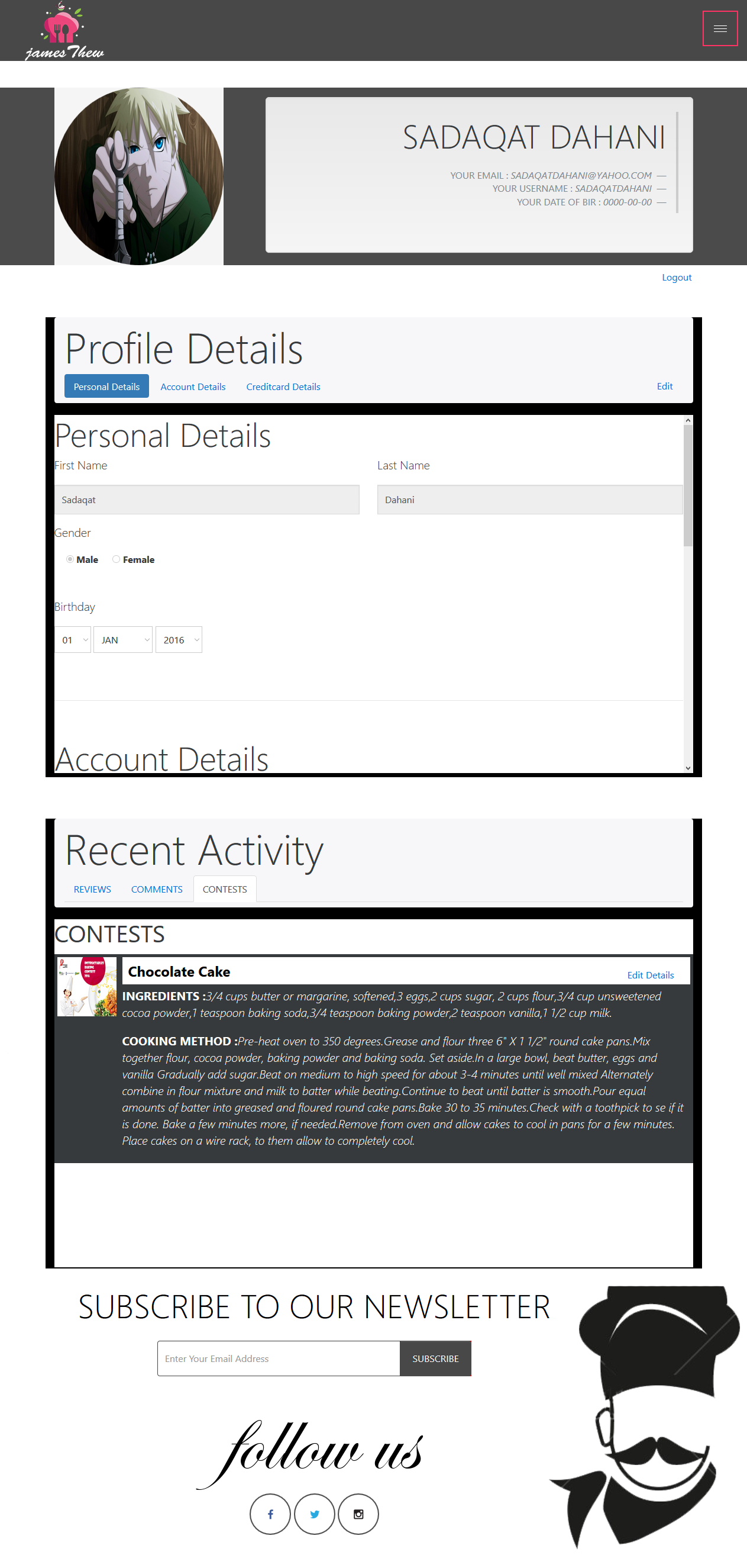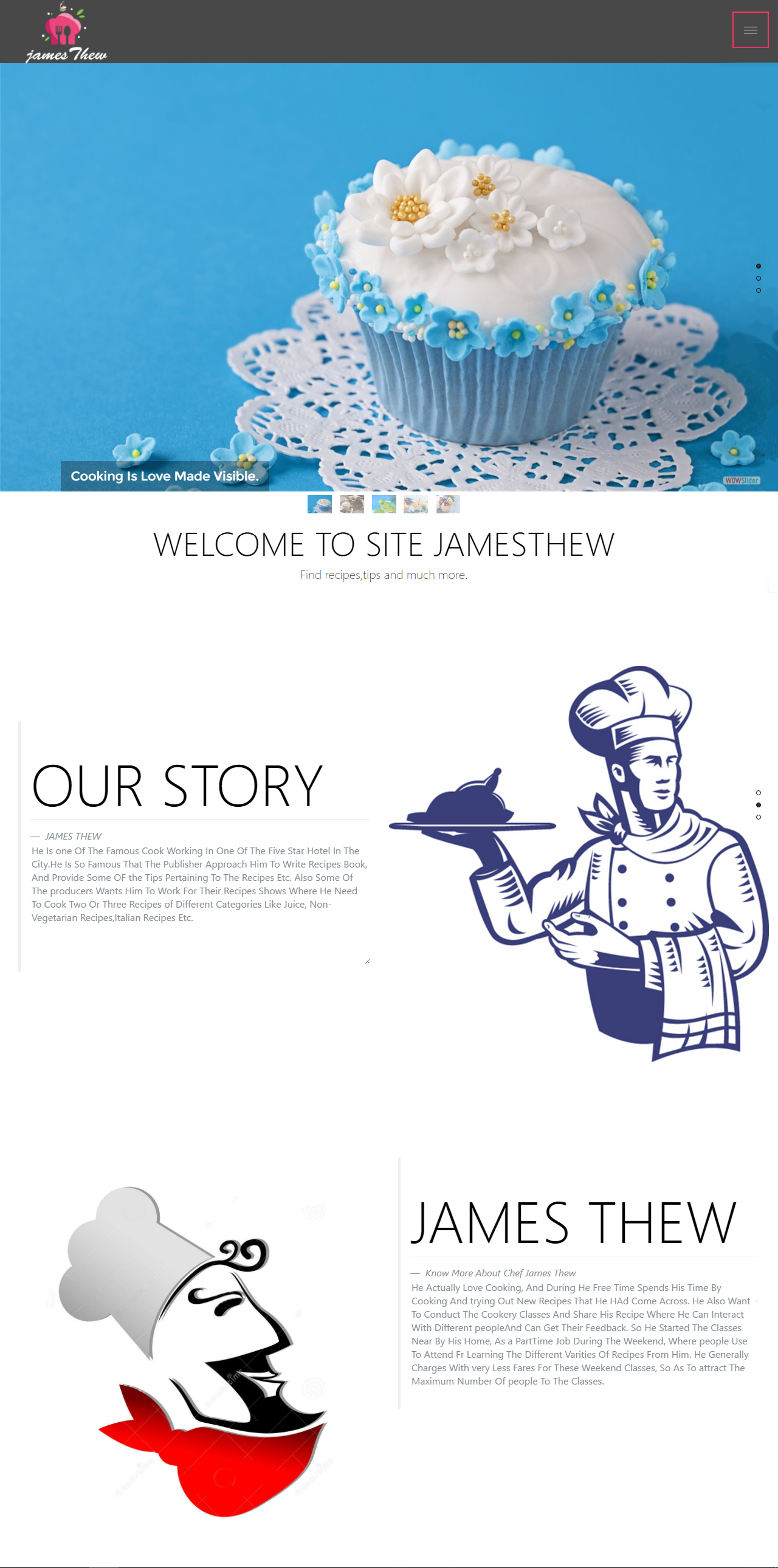 James Thew is one of the famous cook working in one of the five star hotels in the city. He is so famous that the publishers approach him to write recipes book, and provide some of the tips pertaining to the recipes, etc. Also some of the producers want him to work for their recipe shows where he needs to cook two or three recipes of different categories like juices, non-vegetarian and vegetarian recipes, Italian recipes, etc.