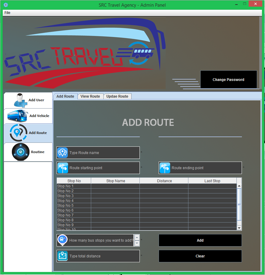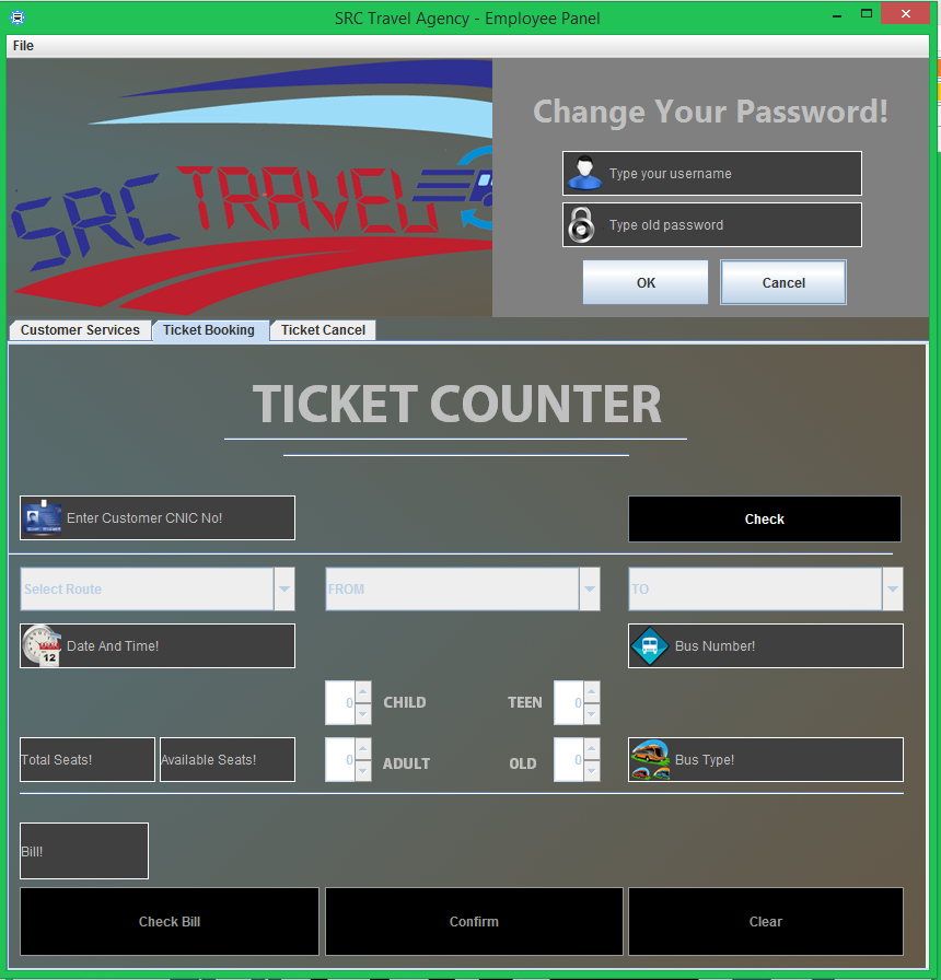 Src Travel is a Bus Ticket Reservation System desktop application where company can book tickets and record it\'s customers details very easily and efficiently in this softwares which provides all sorts of task like booking / cancelling tickets, inserting,updating deleting its customer details and employee details, buses they have, routes and routines of buses and much more in it.