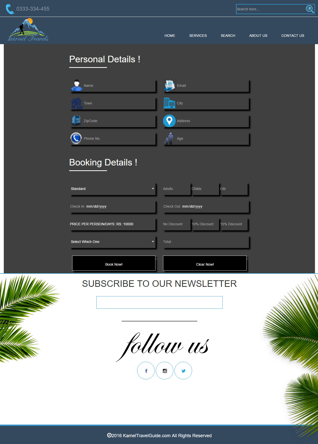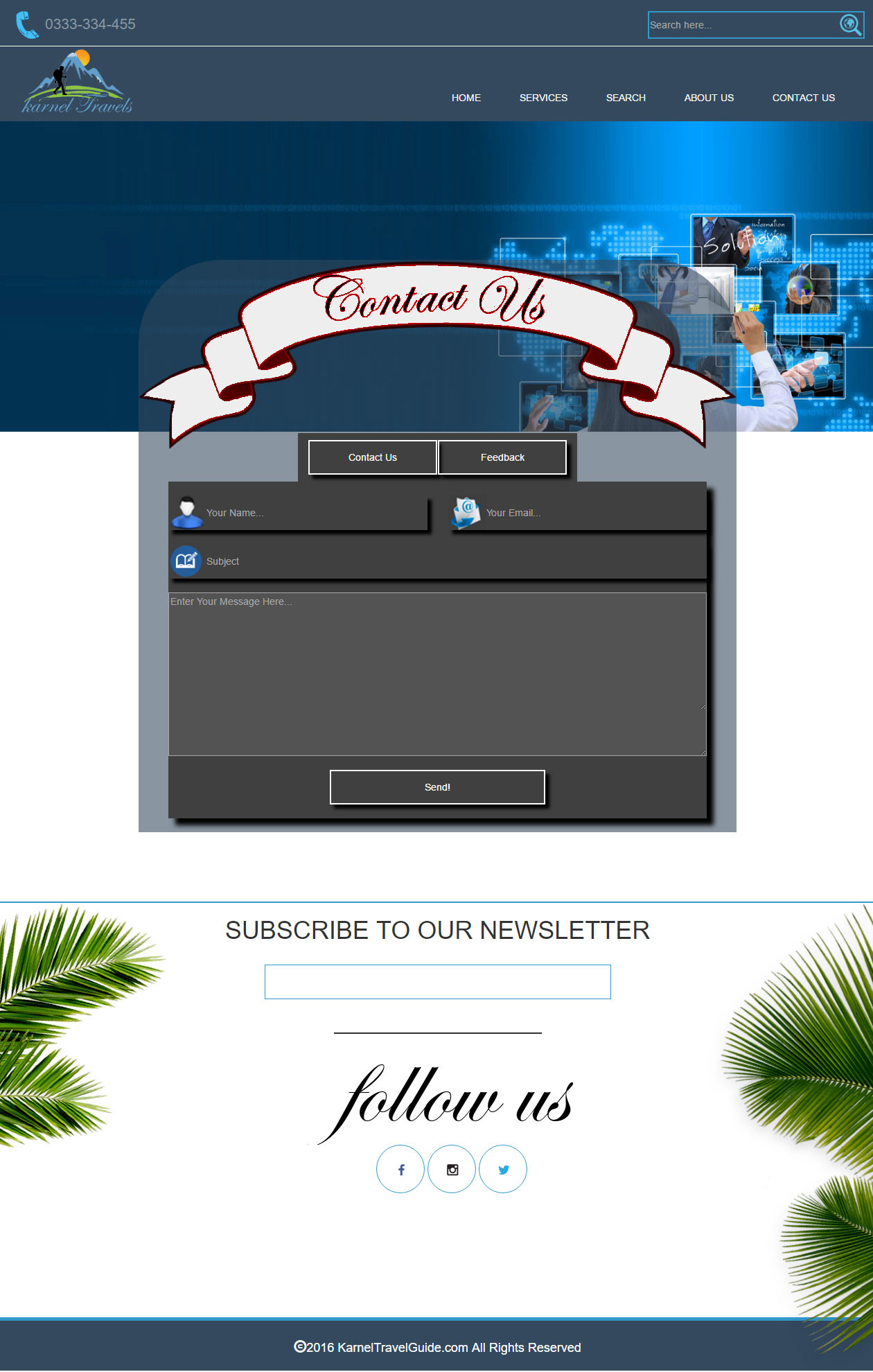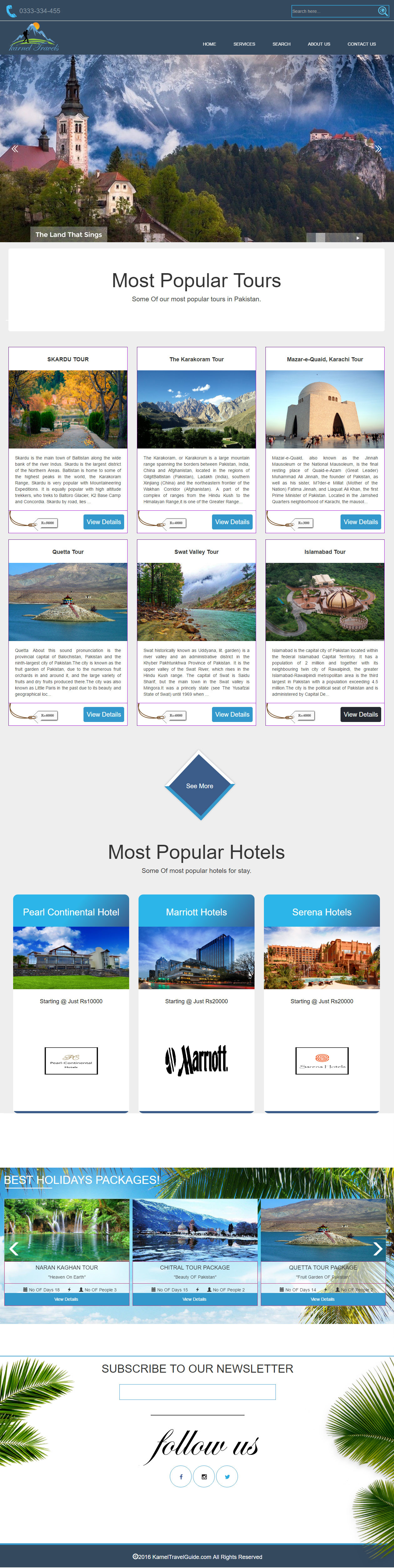 Karnel Travels is a Tours and Travels Company which provides the various transportation facilities between the cities like tourist spots, transportation between different cities in the country, also provides accommodations in hotels, etc. Also they provide the online facility where the customers can visit online, view and order for the tours and as well the transportation. Now they want to provide a website, through which they wan to attract the customers. They want to reach out to the customers by providing various information services like the list of tourist spot, information about the various hotels and restaurants, etc. They want the website to be a URL Specific. So they approached us to build a website for them.
