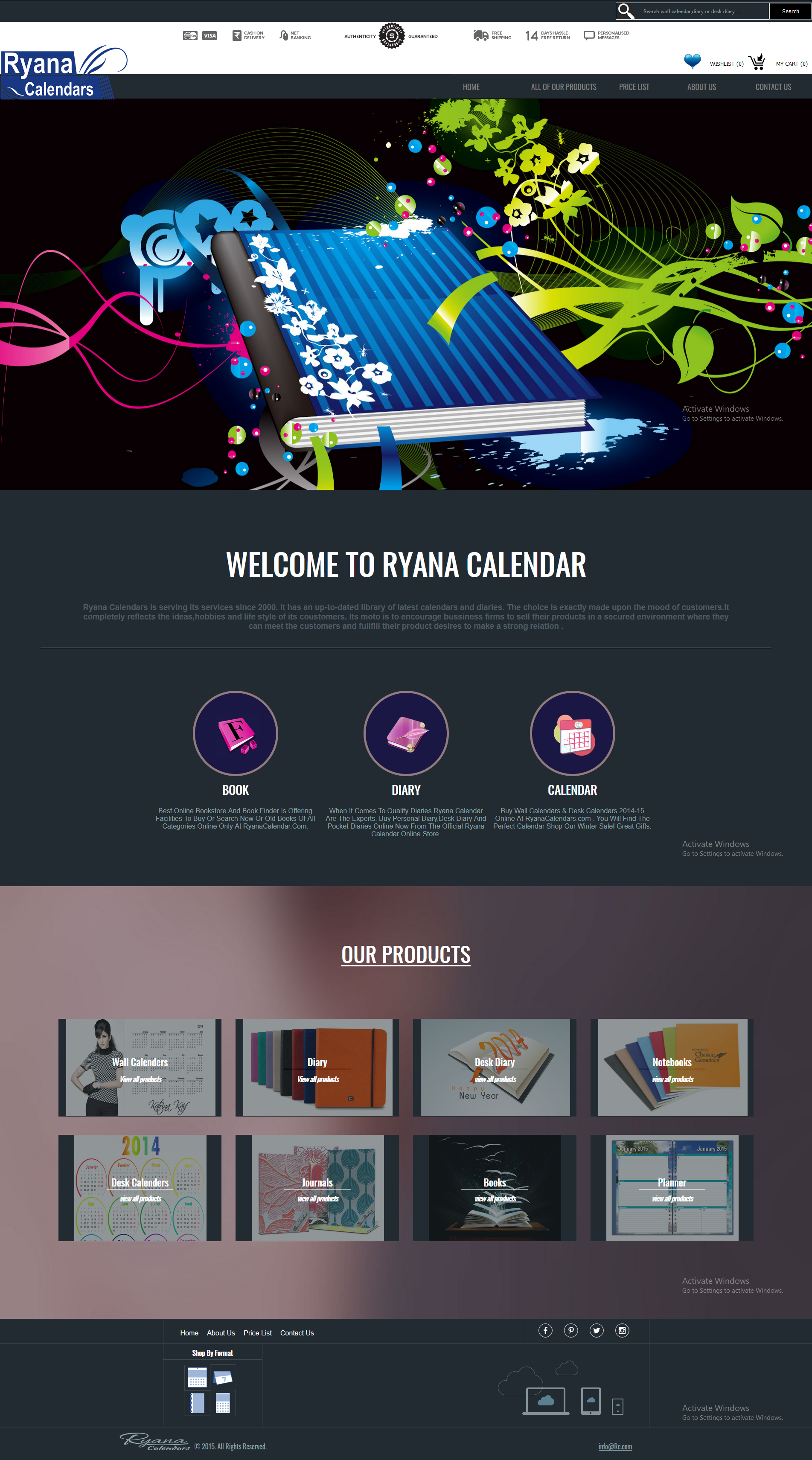 Ryana Calendar is serving its services since 2000. It has an up-dated library of latest calendar and diaries. The choice is exactly made upon the mood of customers. It completely reflects the ideas, hobbies, and life style of customer. Its moto is encourage business firms to sell their products in a secured environment where they can meet the customer and fulfill their product diaries to make a strong relation.